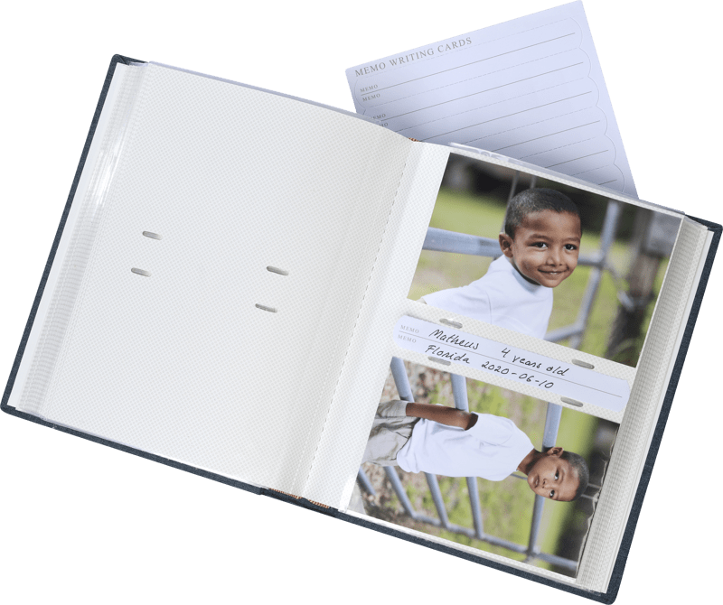 Bokbundet fotoalbum med pärm i textil. Albumet har fickor för 200 bilder i storlek upp till 10x15 cm.