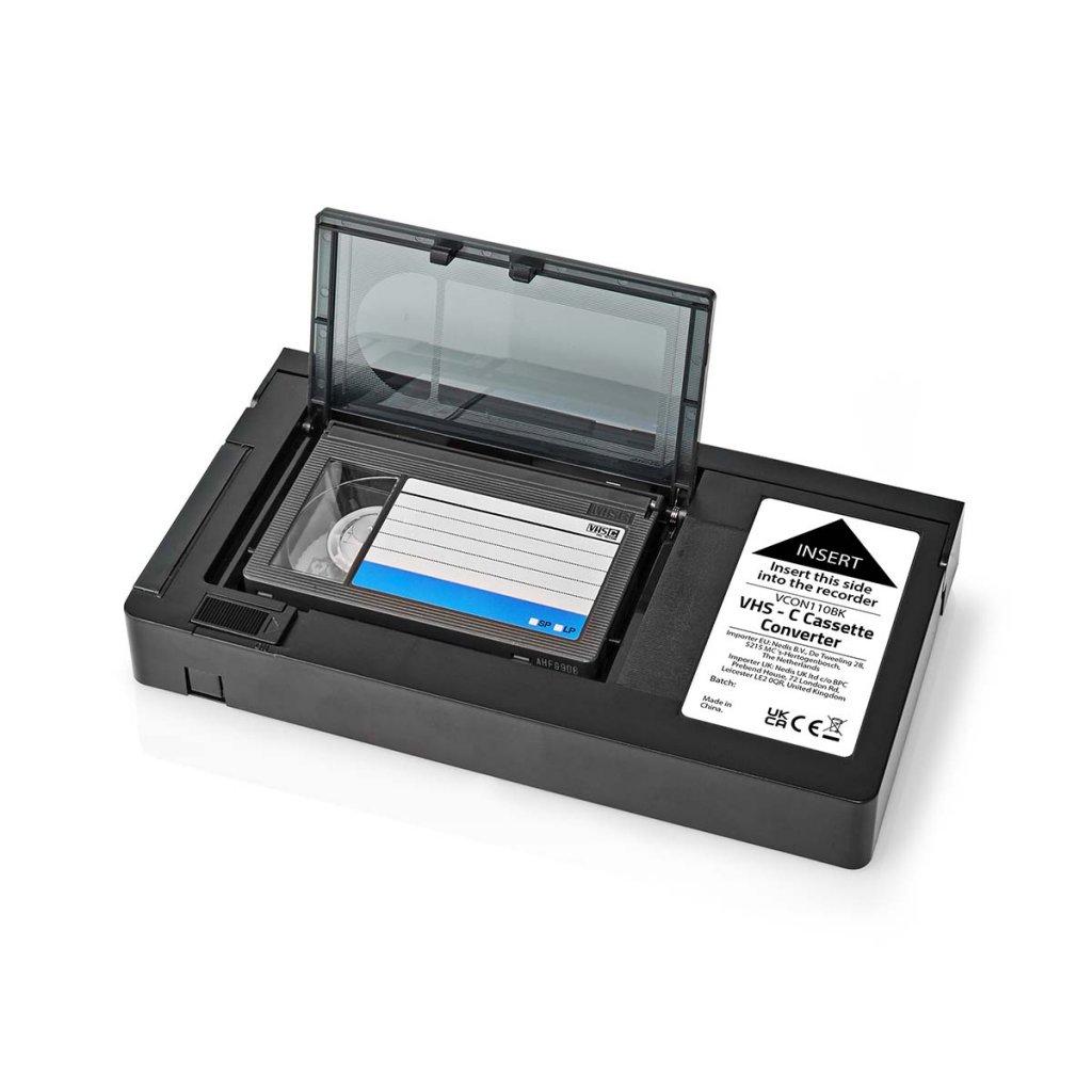 Sätt i ett VHS-C-band i Nedis VHS-C-kassettkonverterare för att spela in eller titta på det i en vanlig VHS-videobandspelare. Sätt i ett AA-batteri för att automatiskt öppna fronten och mata in eller ut ett band. Tänk på att 8 mm-band inte är kompatibla. Endast de band som har VHS-C-logotyp kan användas.