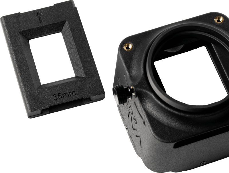 VALOI easy35 skruvas fast på ett makroobjektiv så att du kan skanna 35 mm film med en digitalkamera. Med easy35 är det minimalt med inställningar, justeringar eller misstag eftersom designen säkerställer skuggning från ljus, perfekt inriktning och en fast fastsättning på kameran. Kitet levereras med 280 mm filmdistansrör, vilket gör det möjligt att använda de flesta äkta makroobjektiv på marknaden.