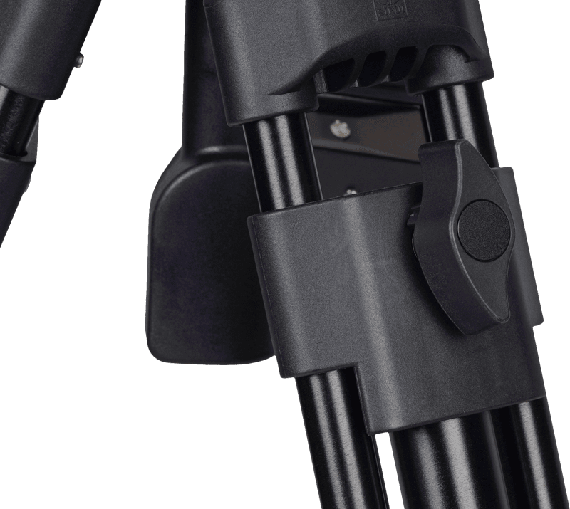 Stativet består av tre ben-sektioner. Lossa benlåsen för att välja höjd mellan 71-140cm.