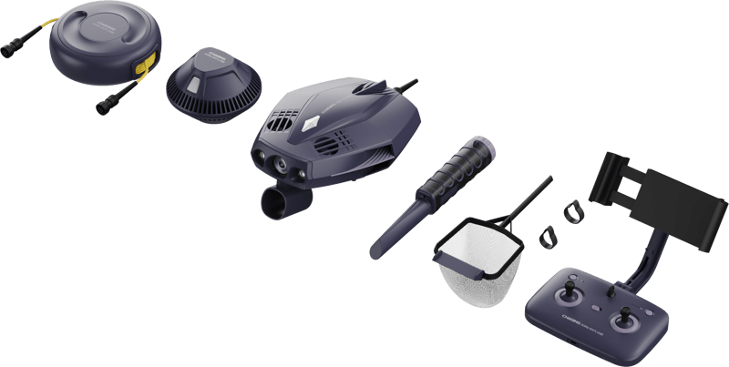 Dory Explore är en liten, kompakt och lättanvänd undervattensdrönare. Med sina unika funktioner gör den den perfekt för undervattensutforskning och skattjakt. Den har en inbyggd metalldetektor och ett avtagbart nät för dina fynd.