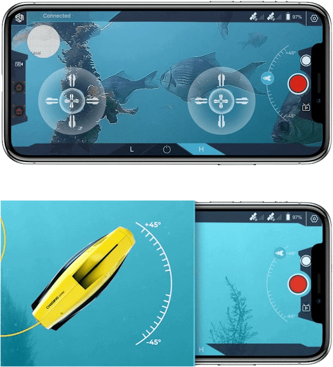 - Lättanvänd undervattensdrönare med dykdjup ned till 15 meter